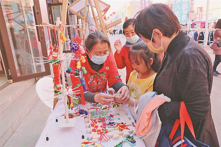 “南极网红潮街”内,一侧为集聚各类小吃的“美食区”,一侧为提供舞台表演、非遗展示等活动的“文化区”。现场,魔术、歌舞等表演氛围感十足,当重头戏舞狮表演一开始,便引来阵阵掌声与喝彩。此外,市民游客还到编织、手工布艺、葫芦烙画等非遗展示区与非物质文化遗产传承人交流,了解非遗文化,感受非遗之美。