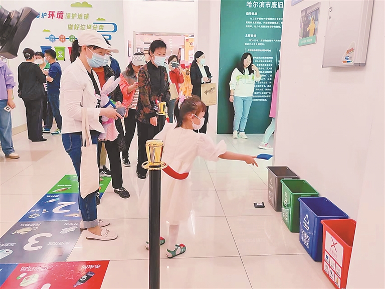 23日上午,香坊区组织街道社区居民来到了位于香坊区万达广场的生活垃圾分类体验馆。在这里,居民既能学习生活垃圾分类知识,又能参与互动电子游戏,现场模拟生活垃圾分类投放场景。