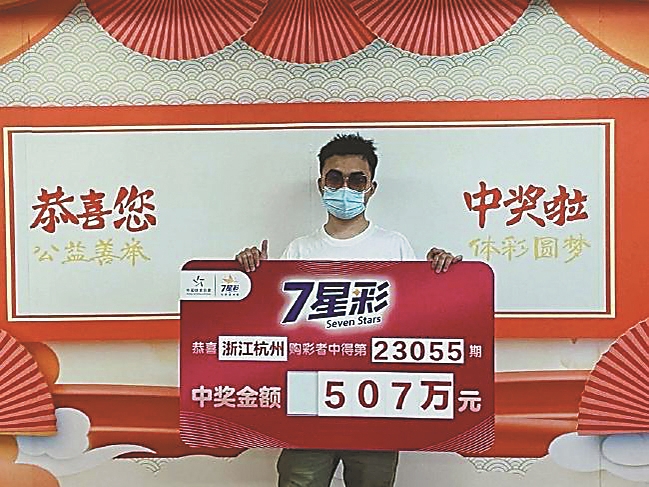 生活报讯 (雪尘) “我是真的没想到自己能中一等奖。”杭州小伙杜先生(化姓)在浙江省体育彩票管理中心的采访室平静地说。16日,体彩7星彩第23055期开奖,当期全国仅中出1注一等奖,就是由杜先生斩获的,由于是前区3+3、后区2胆的复式票,杜先生同时收获二等奖1注及小奖若干,单票总奖金507万元。