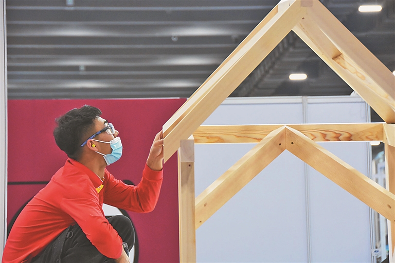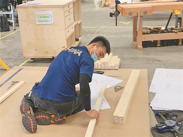 2022年的世界技能大赛木工项目要求榫结合缝隙公差控制在0.5mm内,尺寸公差控制在1mm以内。无论是放样、返线,还是加工、组装 ,每一道工序只要出现一点儿误差,就会造成非常大的累积误差。但在世界技能大赛预赛木工项目中,王纵横的尺寸和缝隙分数基本都是满分,用塞尺评判,误差范围控制在一根头发丝的宽度。经过4天激烈角逐,王纵横最终获得了大赛优胜奖。