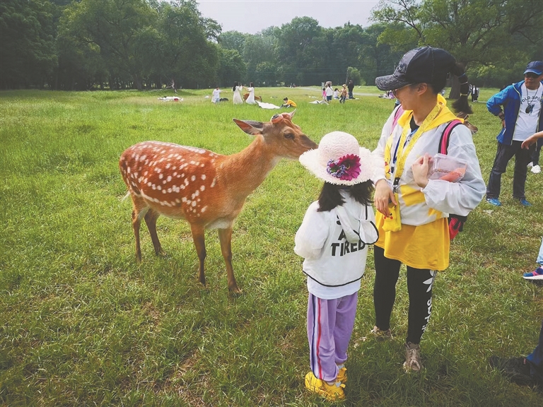 眼下,景区里充满了生机:翠绿色“铺”满了山林,高含量的负氧离子让空气变得格外清新,梅花鹿不仅毛色鲜亮,象征着“新生命”的小鹿也跟着鹿群一起觅食、漫步,它们是孩子超爱的初夏“限定款”美景。