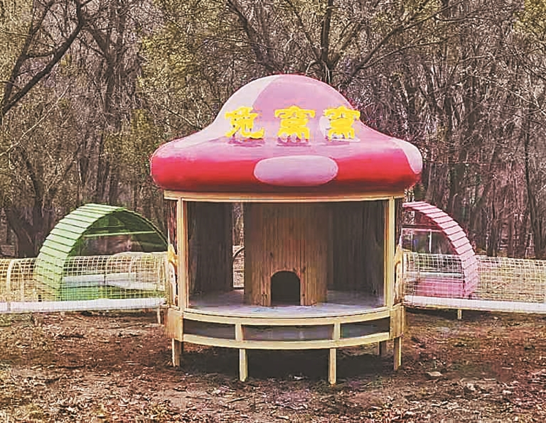 今年4月末,景区还在红叶阁附近新增了5个“兔窝窝”,蘑菇造型的小木屋,不仅与周围山景相得益彰,里面还饲养了20多只可爱的小兔子,只需要拿着胡萝卜登山至此,就可以体验给小兔子喂食的快乐。