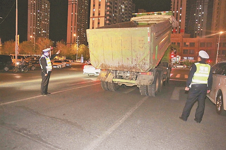 夜间执勤过程中,交警部门还加强对二三类街道的巡逻频次,严查货车在禁止时间内进入禁行路段的交通违法。21时许,车号为黑AAZ73*(黄牌)货车在松北区世博路行驶时因“闯禁行”而被交警取缔。询问过程中得知,该名驾驶人就是车主,十分清楚夜间禁行时间以及禁行路段,为躲避检查,特意选择在一些支路行驶。最终,执勤交警对其处以100元罚款、记1分的处罚。