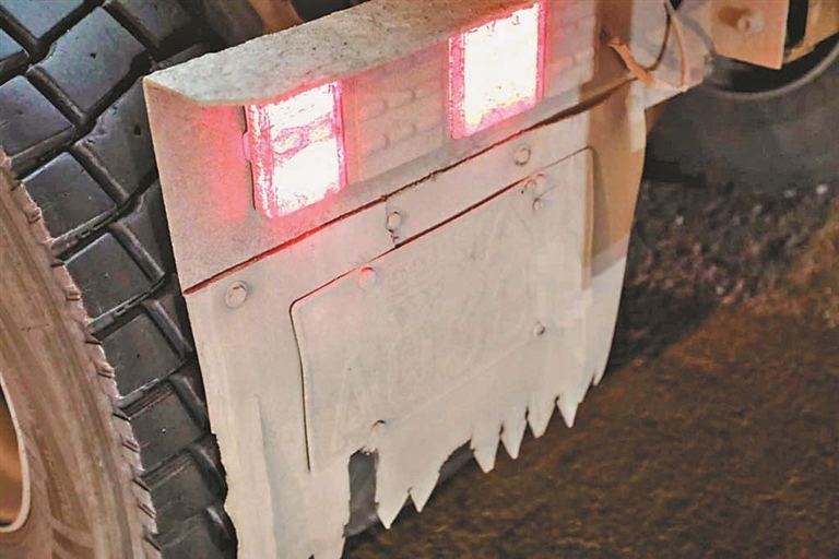 20时20分许,执勤警力在哈东路沿线巡逻时,发现一辆黑AAQ38*号(黄牌)挂车违反禁行时间规定上路通行,将其截停,对司机处以罚款100元、驾驶证记1分的处罚。检查期间,交警还发现该车后方号牌竟然“消失”了,同时,放大号污损无法看清。经过仔细查看,交警发现该车的车牌竟然设有“机关”,可以上下翻折,躲避电子抓拍等处罚,责令司机现场将车牌恢复原状。