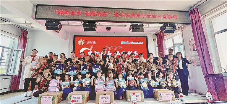生活报讯 (记者李丹 刘维娜文/摄) 1997年,生活报出资10万元在安达市中本镇德本乡建立一所“希望小学”,取名为“新生活希望小学”。26年来,无数孩子在这所学校里读书成长,数名成绩优异的学生从山村走出去成为栋梁之才,回报社会。今年,由黑龙江省慈善总会、生活报社、国药控股星鲨制药(厦门)有限公司联合发起“暖阳慈善 温暖到家”公益活动,29日在六一儿童节到来之前,包括生活报社党员在内的爱心队伍,来到安达市中本镇新生活希望小学,给孩子们送去体育器材、文具、品质药品、健康体检卡,期盼孩子们过一个快乐的六一儿童节。