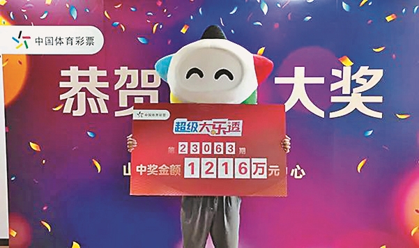 生活报讯 (一兵) 日前,潍坊小伙小徐(化姓)中得了大乐透1216万元的幸运大奖,6月6日,小徐赶往体彩中心,喜领体彩大乐透第23063期追加一等奖奖金。