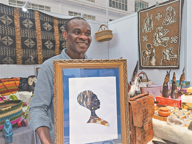 “这是用拉菲草制作的帽子,很漂亮!”在本届哈洽会A展厅喀麦隆展位,展商菲力普用汉语推销着带来的产品。他带来的产品以工艺品为主,有肯尼亚石刻河马、拉菲草编织的帽子和手袋,还有用蝴蝶翅膀制成的人物画像。菲力普告诉记者,他带来的展品都是在非洲纯手工制成。