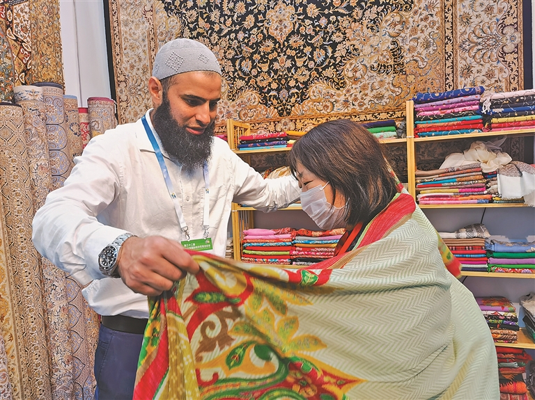在本届哈洽会A展厅,带有浓浓异域风情的羊毛披肩一亮相,便引来冰城的美女们驻足观看。这些产品来自巴基斯坦,参展商Imran Rah用汉语对记者说:“羊毛围巾是纯手工制成的,这些漂亮的披肩是专门带给冰城美女的。”