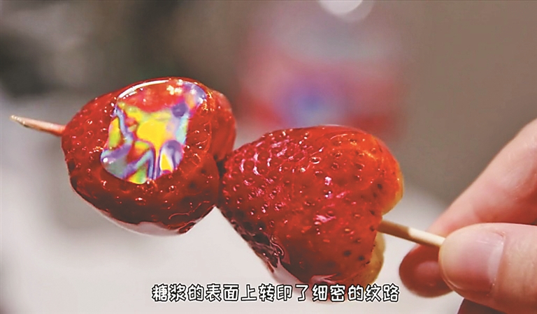 她把西瓜皮切成“连环套锁”的形状,在视频文案里写道:“夏天到了,没有什么比吃一个冰镇西瓜更赞的了,如果有,那一定是连环套锁瓜”;不加一滴色素,她把冰糖葫芦放置在一张薄薄的衍射光栅上,用光学原理做出了闪闪发亮的炫彩糖衣;她在家里用一杯普通的糖水,使光线呈现出了缤纷的色彩……这些有趣且有技术含量的视频,播放量逐渐攀升。