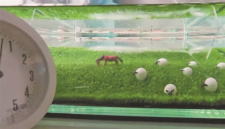 去年11月,她在鱼缸里铺上塑料草皮,放入“小房子”“马匹”和几只“小羊”,注入小半缸聚乙二醇,盖上一层塑料膜。在加入清水后,她小心地抽掉塑料膜,让两种液体慢慢融合。等待15天后,她终于成功了,鱼缸里清晰地出现了“海市蜃楼”的景象,网友们惊呼“太牛了!”