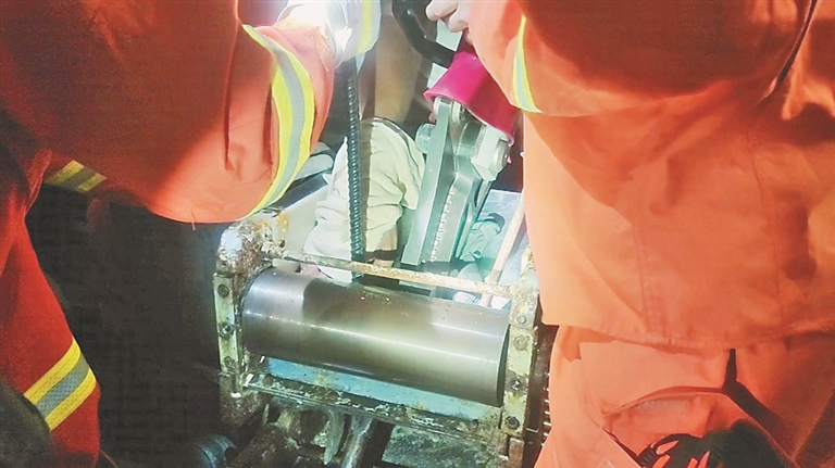 7时09分,消防员赶到现场看到,1名男子手被卡在压面机里,立即对被困人员展开救援,使用破拆工具将压面机破拆。7时29分,男子获救后,被送往医院进一步救治。