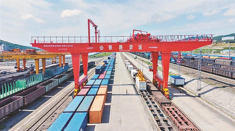 在国际联运运输中,绥芬河口岸积极开发集装箱班列陆海联运多式运输业务。2018年8月正式开通中欧班列集装箱运输业务后,绥芬河口岸站进行了国际集装箱场数智化改造,在国内率先投用95306“数字口岸”,实现“无纸化通关”,推动了中欧班列开行数量逐年递增、货运品类不断丰富,运输货值成倍增长。从开通初期每月2列到如今每日超过2列,中欧班列通行列数已连续4年实现两位数以上增长,其中2022年度增幅达61%,增长率居全国口岸首位。