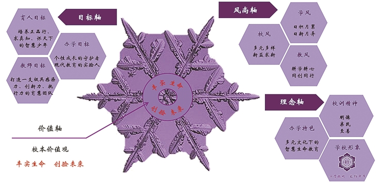 文化,彰显品牌有特色。2015年建校以来,在新区教育改革发展的沃土中,郝岚书记带领班子成员在承担九年义务教育教学、带动区域教育均衡发展中不断创新,以战略思维谋全局、以系统思维促全面、以底线思维定方略、以法治思维图善治,秉承“丰实生命 创验未来”的校本价值观,“明德 亲民 至善”的校训,逐步完善了“紫冰花”文化育人体系,将优先发展与带动区域教育齐头并进。她积极响应新区“校长职级制”“区管校聘”“绩效管理规范”三大教育改革,带领班子健全了《学校章程》《“十四五”发展规划》等管理制度,通过“紫冰花”文化代言人、新教师入职培训、入校新生校园学习等形式,强化校园文化氛围。“紫冰花”文化已经成为实验学校的办学灵魂和品牌。