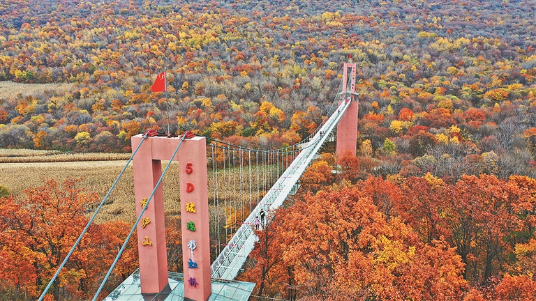 境内,有距离哈尔滨最近的纯正原始森林。这里的妈妈顶景区,瀑潭、奇石、古木,共同构成了一幅森林魅力画卷。尤其是到了秋天,五花山色“上线”,林中的红松、落叶松、桦树、枫树等各种树木,呈现出各种深浅不同的绿、白、黄、红、紫,晕染在蓝天之下,分外艳丽。峻秀的自然奇景,悦耳的山中鸟鸣,一起演绎着浪漫秋日里的森林私语。与此同时,这里的悬羊岭景区里,枫叶也开启了红遍山林的模式。迎着凉风,一路爬上山顶时,红叶映云海带来别样风光。