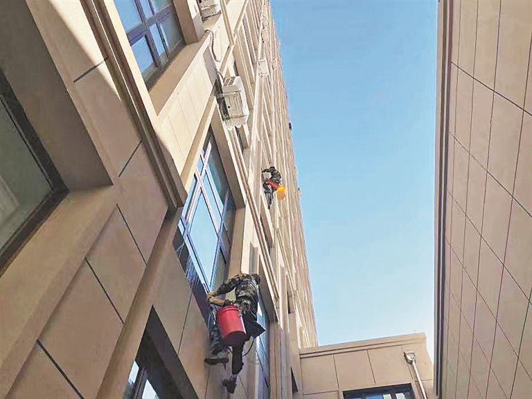 生活报讯 (记者仲亮) 随着假期的结束,巴黎第五区、汇龙北纬45°、汇龙温莎花园、汇龙澜湾九里等小区出行返家的居民惊喜地发现,小区物业聘请了专业的“蜘蛛人”高空作业,陆续开展楼宇外墙玻璃进行清擦工作,解决业主清擦外玻璃难的困扰。
