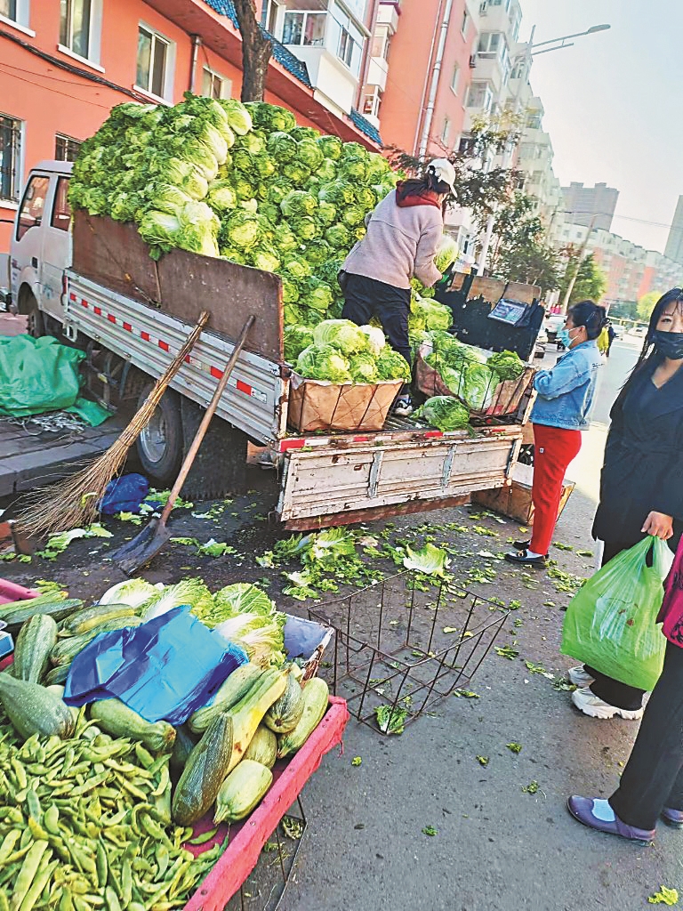 在木材街上,多个菜农正在售卖秋菜。一菜农告诉记者,他家在道外民主种了几亩大葱。去年的大葱不愁卖,价格也好,地头的批发价格能达到七八毛一斤。而今年的大葱虽然长势好,但是价格只有去年的一半还不到。地头价格只有两毛五,价格太低了,所以她和丈夫就用农用车拉到城里卖,能多卖点。