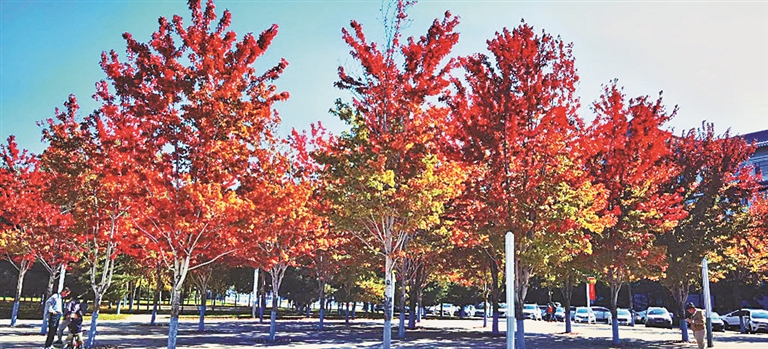 记者了解到,该校图书馆门前的40多棵红枫是2007年引进的,为了适应哈尔滨冬天寒冷的环境,引进之前在大连经过多年驯化、冬天进行保温防护,经过悉心的照料,这40多棵红枫全部成活,成为热门打卡地。