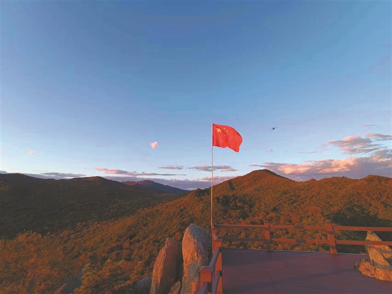 大循环栈道全长约8900米,正常走一圈大约5个小时,王滨夫妇连走带玩4个半小时就下山了。在他们看来,整个景区最美的风景就在妈妈顶顶峰,“站在山顶,可以看到周边山色全貌,尤其秋天的五花山色,非常不错。当天正好是‘十一’,山顶的五星红旗,增添了节日的氛围感。看到叠石峰整齐地码放在山顶,真是感叹大自然的鬼斧神工。”
