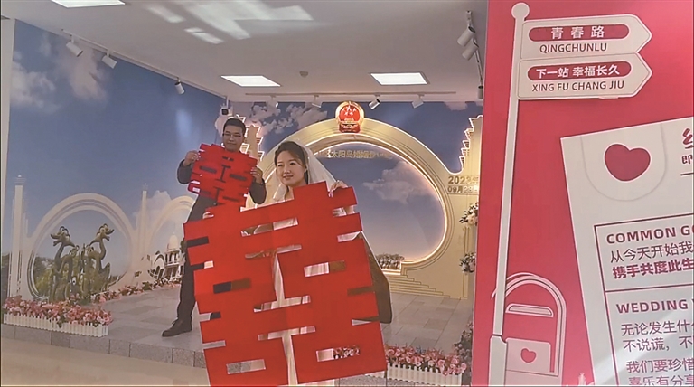 哈市民政局社会事务处相关负责人于姗姗说,当下,年轻人越来越喜欢与众不同、富有特色且极具个性的婚姻登记方式,并在婚姻登记时注入属于自己的浪漫情怀。哈市民政部门积极回应新人们的关切,推进婚俗领域移风易俗,打造的景区内的婚姻登记处,浪漫,贴心,有仪式感,吸引众多新人前来进行婚姻登记。