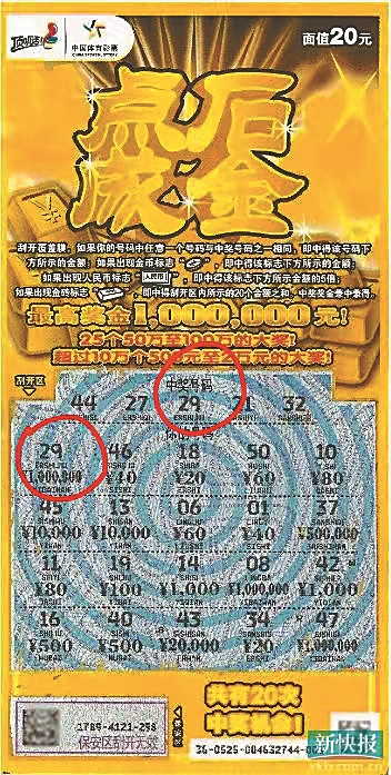 中奖者陈先生是名年轻小哥,当天他只是购买了1张“点石成金”即开票,而且是从一叠票里随意抽出来的。当刮到第一个数字“29”时,就看到显示中得100万元。此时的陈先生没有声张,只是悄悄地拿着中奖票回家了。9月28日,陈先生一个人到体育彩票中心完成了兑奖手续。