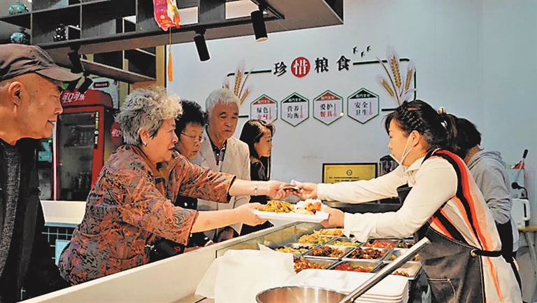 16日晚饭时间,记者在恒大绿洲社区助老餐厅看到,随着后厨新鲜诱人的饭菜出锅,家住附近的老人陆续来到餐厅就餐,也有的老人将饭菜打包带回家。65岁的孙玉伟家住恒大绿洲小区,之前他和老伴都是自己买菜做饭,他们的女儿在北京工作生活。“天天做饭很累,主要是不知道吃什么,做多了还浪费,现在好了,可以到助老餐厅吃,饭菜价格便宜,而且方便。”孙玉伟说,自从社区助老餐厅开业,他几乎天天来吃午饭,13元套餐吃得很饱。