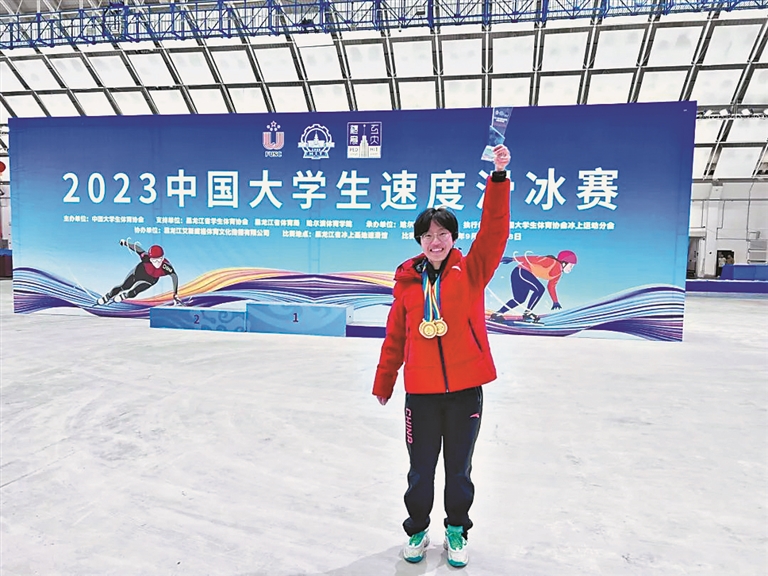 近日,哈尔滨工程大学动力学院涡轮机技术研究所博士生石云姣,在2023年中国大学生速度滑冰赛上,夺得个人三个项目的全部金牌——女子甲组500米冠军、1000米冠军、3000米冠军,成为本次比赛获金牌最多的女运动员,她还荣获本次比赛“最佳女运动员”称号。赛后,记者采访了她。