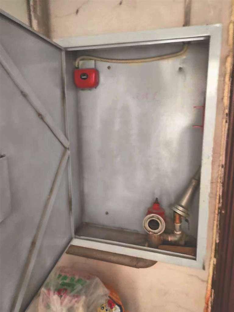生活报讯 (实习生周思彤 记者何兴丽 李威兵 文/摄) 近日,住在哈市南岗区学府名苑小区的数位业主通过本报热线反映,该小区消防设施缺失,业主已经反映多年,但一直无法解决。记者到小区走访发现该小区消火栓里几乎全是空的,由于管理不善,很多消火栓已经被业主当成了仓库使用,楼顶逃生通道被锁死,存在严重安全隐患。