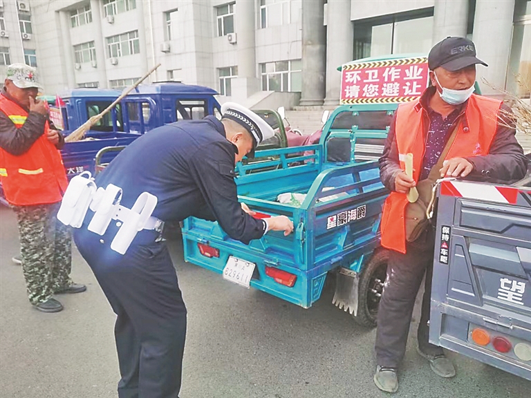 生活报讯 (记者何兴丽) 秋冬季天气多变,为进一步提高环卫工人和环卫作业车辆驾驶人的交通安全意识,哈尔滨市公安局交警部门在全市开展“环卫工人安全作业”交通安全宣传活动。
