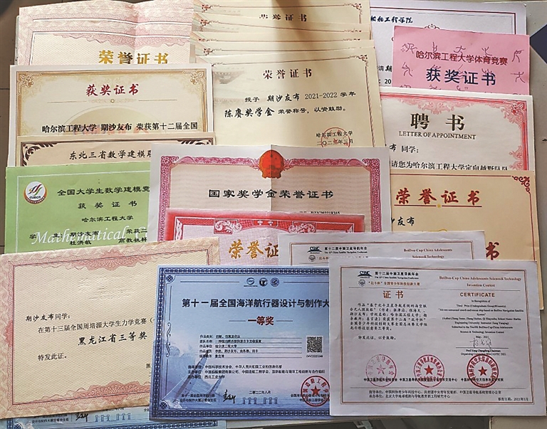 从大一的专业第十名,到大二的专业第五名,在大三下学期,期沙友布以综合成绩专业第一的成绩,获得了推免直博上海交通大学的资格。本科期间,他获得过很多荣誉:校三好学生、校十佳团支书、校优秀学生干部,他还拿过哈工程大学学生的最高荣誉——陈赓奖学金,两次获得国家励志奖学金、国家奖学金。