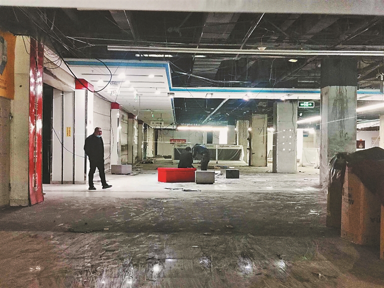 25日,在大庆市毅腾商都商场记者看到,一楼国美电器的牌匾还在,只不过大门紧锁。透过门缝记者看到,里面空空荡荡,3名男子正在走动,其中一名男子告诉记者,这里已经租给别的商家,正准备装修。