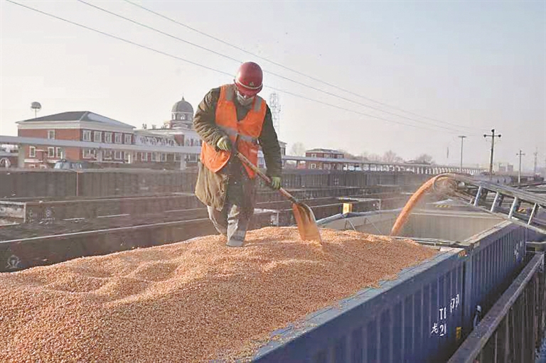 绥化市和黑河市也是国家重要的商品粮产储基地,北安、龙镇、康金井、兴隆镇等车站所在地也是国家现代农业示范区,粮食产销及深加工产品外运量较大。8月下旬,绥化车务段即组织营销团队深入粮食深加工企业调研,详细了解企业原粮收购计划、价格和范围等信息,大力开展“公转铁”“散改集”运输,先后争揽发往到山东、辽宁、内蒙古等方向粮食货源40余万吨。饲用稻谷拍卖启动后,该段迅速对接供应链上下游企业,精准掌握运输计划和流向,为各企业设计拍卖饲用稻谷运输方案。9月份以来,该段已累计发运粮食4629车30.2万吨,同比增幅分别涨27.8%和29.1%。