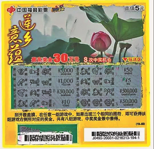 20日,黄先生与好友一同前往钦州市福利彩票发行中心兑奖。据了解,黄先生是一位年轻小伙,也是福彩的忠实粉丝,经常会到福彩站购买双色球彩票,顺便买上几张刮刮乐。中奖当天,黄先生与好友经过投注站时,向好友提议进店购彩,他们根据走势图投注了一注双色球,接着购买了几张“莲乡意蕴”和“翻6倍”刮刮乐彩票。当黄先生刮开最后一张“莲乡意蕴”彩票时,3个一样的图案出现在眼前,奖金显示为30000元。
