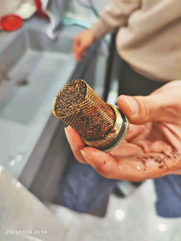 当日20时,负责该辖区供热的水暖工人来到张先生家。通过调取换热站流量、压力等供热参数发现,该辖区供热运行稳定。经过对张先生及左邻右舍测温发现,张先生家的室温比其他邻居家低2℃,水暖工初步判断认为,造成室温低的原因可能是室内供热管线出现了堵塞。于是,水暖工对张先生家的地热管线进行了排查,结果发现,地热管的滤网处出现堵塞,经过冲洗滤网等手段,张先生家的室温有所提升。