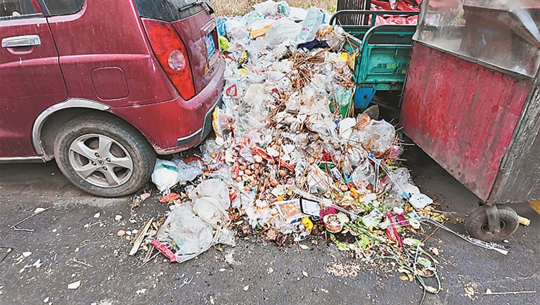 “红旗示范新区”院内垃圾成堆