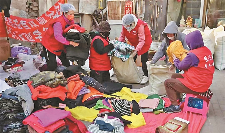 活动当天,志愿者们一大早就来到指定地点,收拾场地、消毒以及防尘用品。志愿者田洪霞还捐赠了300个袋子用来打包衣物。“收到市民捐赠的衣服,我们会通风晾晒,消毒之后再分类、过秤,为防止衣物被雨淋,我们会先套上塑料袋再装丝袋封口,力争把所有的衣物都安全、完好地交到山区孩子们的手中。”志愿者刘淑艳说。