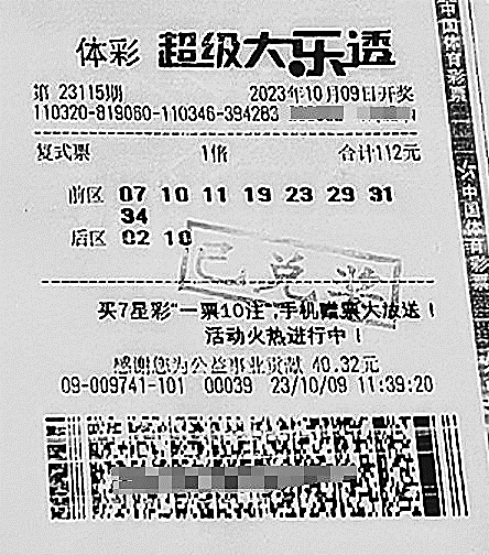 生活报讯 (雪尘) 10月9日开奖的大乐透23115期开奖中,江苏购彩者吴先生擒获当期1注一等奖,奖金总额高达766万余元。