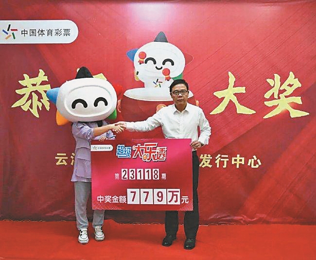生活报讯 (传和) 10月16日晚,体彩大乐透第23118期开奖,当期中奖号码为:“06 07 13 25 33+05 08”,广东省云浮市的赵小姐(化姓)以机选20元单式票大乐透长票的投注方式,喜中大奖779万元。