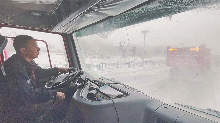 坐在史成良的驾驶室内,记者注意到他的手机时刻在充电,清雪动态信息实时更新,让他的手机提示音响个不停。史成良作业时表情严肃,操作车辆动作流畅,“要说不累那是骗人的,你看我们驾驶员的脚,到现在作业快12个小时了,踩油门、刹车,下车的时候,这个脚掌都快没知觉了,工作虽然辛苦,但是看着街路干净了,听着过路的人说‘这次清雪又快又好’,心里甭提多高兴了。”史成良由衷地说。