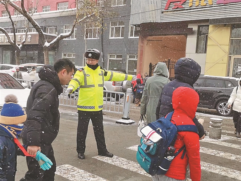 生活报讯 (记者何兴丽) 8日,哈市中小学幼儿园复课。受降雪影响,校园周边车流聚集、交通压力增大。哈市公安局交警部门开启雪天护学模式,积极与教育部门对接,因区施策,采取护航清雪作业、加强交通疏导、强化“警校家”模式等有效举措,降低因降雪和复课等因素对全市交通压力的影响,为师生、家长提供安全有序的道路交通环境。