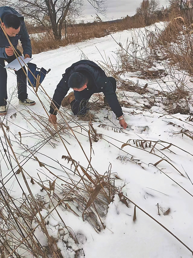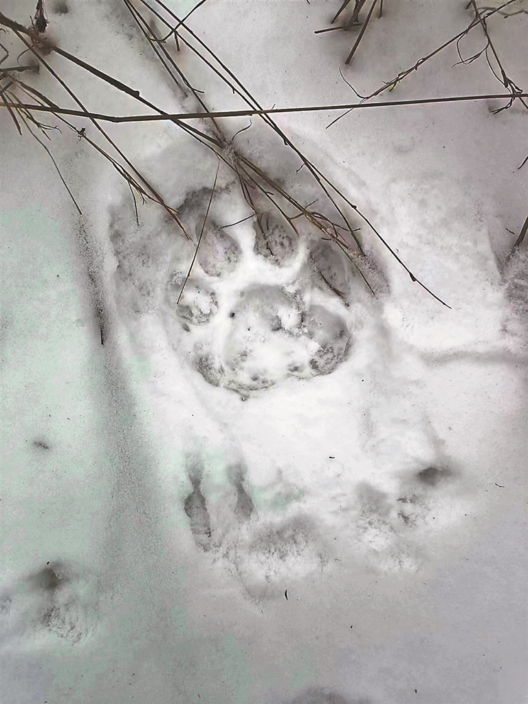 “8日晚上,我家狗让老虎咬死叼跑了。晚上八九点钟我还听见狗在叫,后来我就睡觉了,早上起来喂狗的时候,发现就剩个狗头了。”虎林市虎头镇李建海说,“凌晨下雪,老虎的脚印让雪盖上了,它是8日晚上9点到12点之间来的。”李建海通过观察和推测,怀疑咬死自家狗的凶手是老虎。第二天,相关人员来到李建海家查看。