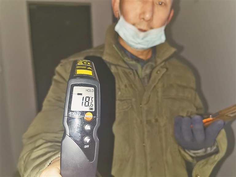 11月8日,蔡先生来到新房,发现两套房子的暖气都不热,打听邻居得知,小区早都供热了。蔡先生急忙向供热公司反映暖气不热的情况,工作人员到蔡先生检查发现,原来没有给蔡先生家开栓。工作人员开栓之后,暖气有了点温度。“即使开栓了,屋子也不算暖和。”在蔡先生家,记者用专业的测温仪进行了实时测温,105室的室温为18.6℃,101室内为20.2℃。