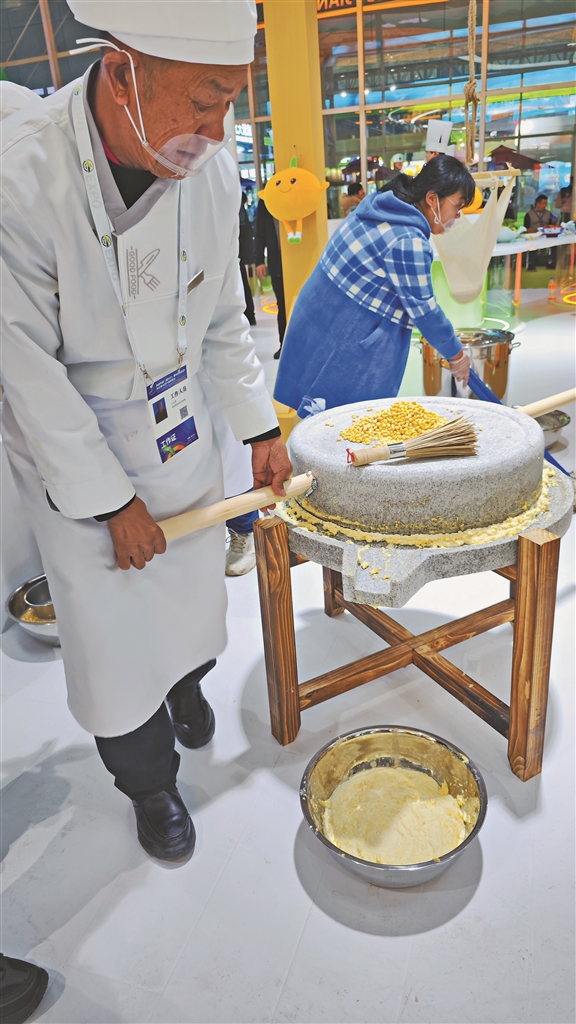 生活报讯 (记者梁晨 文/摄) 一粒大豆,历经脱胎换骨,浸透百转千回滋味。11月14至18日,在哈尔滨召开的首届中国(黑龙江)国际绿色食品和全国大豆产业博览会上,一场百豆宴吸引了众多逛展市民的注意。玉书豆腐、千树万树梨花开、层峦叠嶂、黄鹂鸣翠柳,这些诗意的名字,你能猜到都是哪些美味佳肴吗?让我们来一睹“芳容”吧。