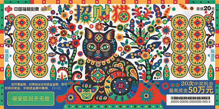 一说起可爱的招财猫,许多人脑海中总会浮现出这样的画面:一只萌态十足的陶瓷猫咪,正笑容满面地蹲踞在商店门口,举着小手不停地做招揽状,呼唤过往的客人。近日,中国福利彩票发行管理中心推出了一款刮刮乐游戏“招财猫”,单张面值20元,共20次中奖机会,最高奖金50万元,该游戏玩法简单,刮开票面左右两侧覆盖膜,如果刮出任何奖金金额,即可获得该奖金,中奖奖金兼中兼得。
