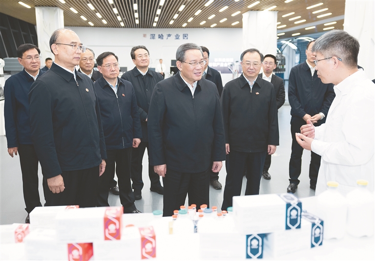 在黑龙江,李强首先来到大唐哈尔滨第一热电厂,察看机组生产运行,了解地方供热情况,要求全力抓好保暖保供,确保群众温暖过冬,同时积极推进节能降耗,不断提高供暖效率。李强来到哈尔滨工业大学,听取学校发展情况介绍,勉励大家赓续优良传统,在教书育人、科研攻关等方面继续奋发作为。李强考察了惠达科技公司,详细了解农业智能装备研发推广情况,要求集中各方力量加强协作攻关,加快推动农业机械化、智能化发展。在哈尔滨新区江北一体发展区,李强听取深圳(哈尔滨)产业园建设情况,指出要借鉴先进地区经验,着力搞活发展机制,培育新的经济增长点。在哈尔滨飞机工业集团,李强察看生产线和机型展示,希望企业着力突破关键核心技术,打造世界一流直升机企业。