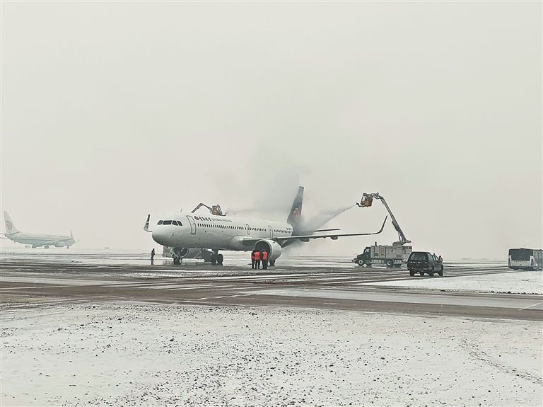 哈尔滨机场机务部门紧急调配人员,着重加强对航空器关键区域检查,共投入17台除冰车实施不间断作业。截至11点,累计完成飞机除防冰60架次。