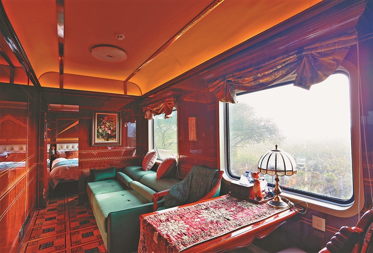 全列车组15节,包括高级软卧、酒吧、中西餐厅、茶室、会议室 、特色产品展厅、儿童游乐室、图书室、医疗室等功能车厢,让游客全程体验“上车入住,下车旅游”,享“车随人走,边走边游”的全新旅游模式。