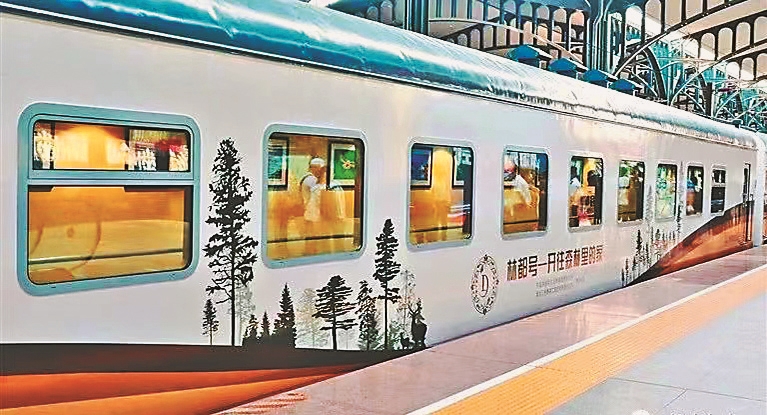 “林都号”旅游列车是由中国铁路哈尔滨局集团有限公司与黑龙江伊春森工集团有限责任公司联合打造的一列高品质旅游列车,从协议签订到首发仅用时100天。