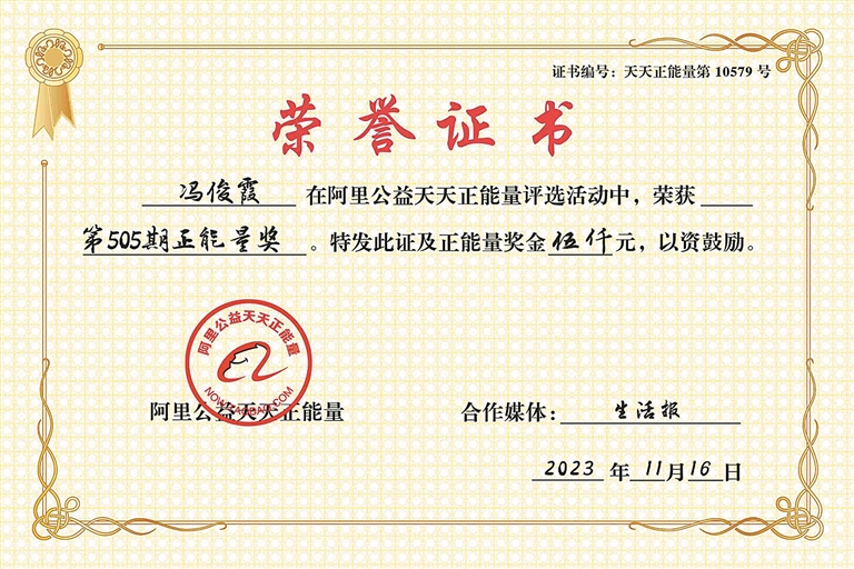 “天天正能量”是阿里巴巴公益联合生活报在内的全国400多家主流媒体共同打造的知名公益项目,每天关注、鼓励、传播平凡人的“真善美”。截至目前,已累计奖励12000多人,投入公益金超1亿元。
