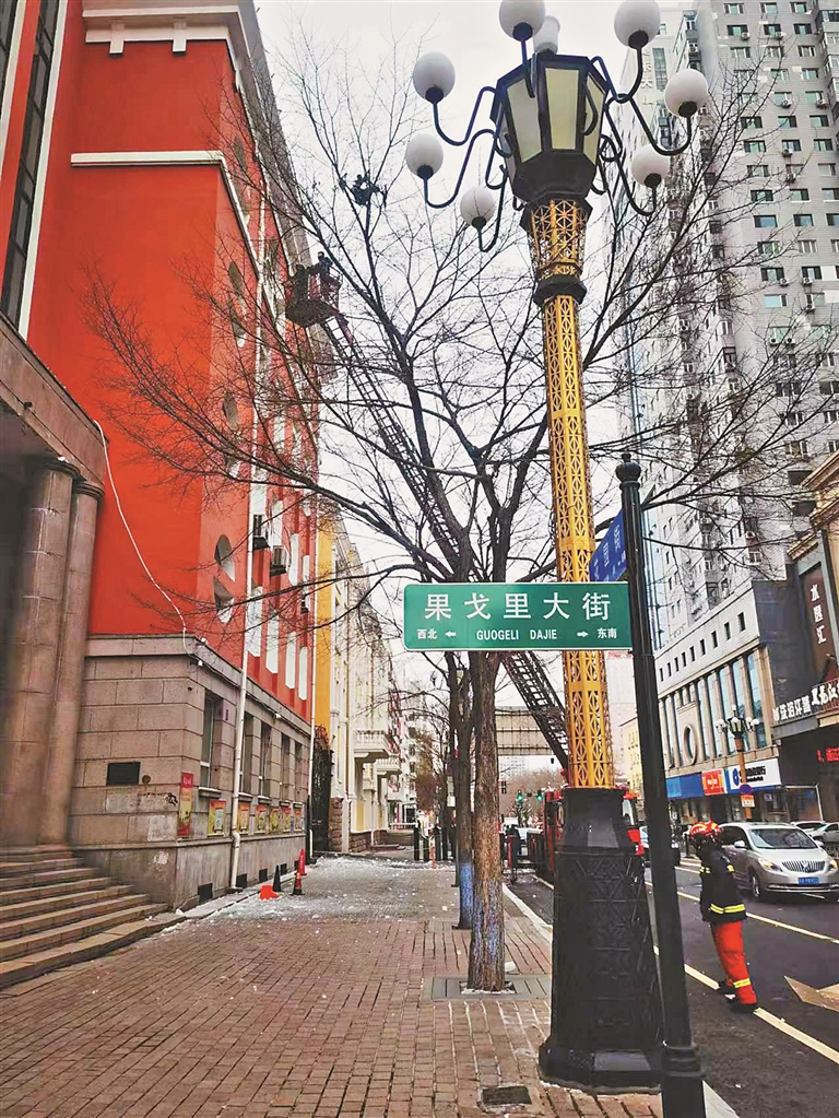 生活报17日讯 (帮办记者栾德谦 史天一 帮办记者栾德谦 摄) 17日,本报刊发了《地段街、国民街、果戈里大街等街路有多处冰溜子》一文。当日,记者再次对以上地点的冰溜子情况进行了回访,发现前一天存在的冰溜子已经陆续被清理,尚未清理的,也已做了围挡,准备周六清理。