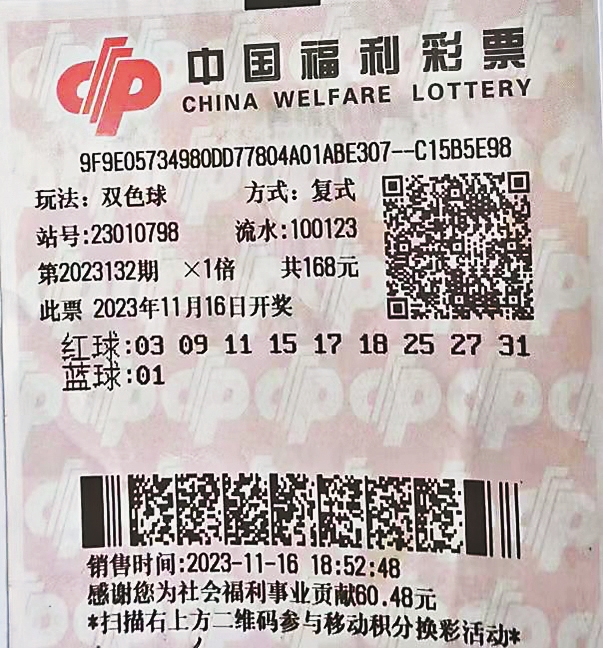 生活报讯 (记者李丹) 11月16日,中国福利彩票双色球游戏进行第2023132期开奖,这也是本次双色球12亿大派奖的第4期开奖。哈尔滨市中出当期一等奖1注,单注奖金603万多元,派奖奖金105万余元,加上其他小奖,票面奖金共计715万余元,这也是我省在本次派奖活动开始后中出的首注双色球一等奖。